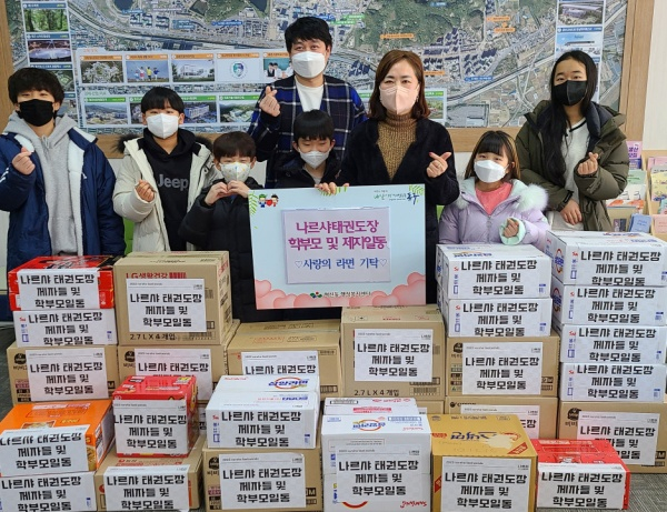 대구 동구 혁신동에 소재한 나르샤태권도장(관장 최용준) 학부모와 수련생들은 지난 4일, 어려운 어르신들을 위해 라면 30상자와 햇반 및 핫팩을 기탁했다.