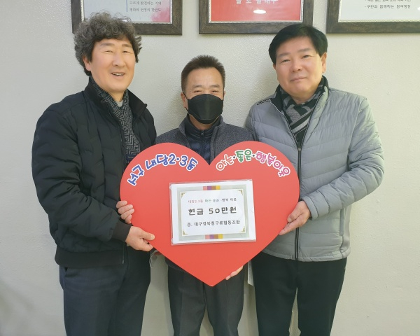 대구경북침구류협동조합(이사장 노원조)은 지난 11일 관내 어려운 이웃을 위해 써 달라며 이웃돕기성금 50만원을 내당2·3동 행정복지센터에 기탁했다.