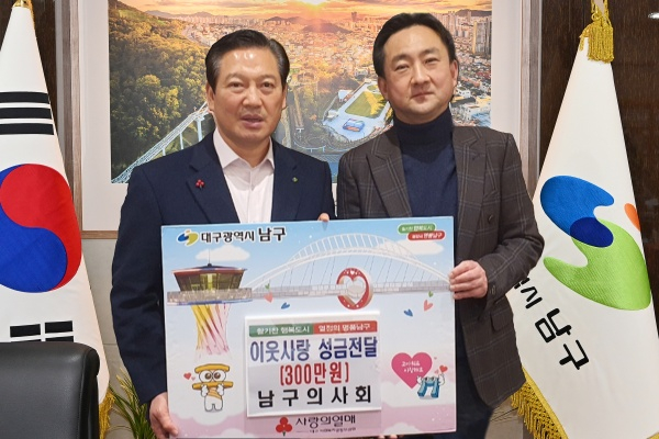 정의달 대구시 남구의사회장은 “설을 앞두고 지역 내 어려운 이웃들에게 작은 온정을 나누고자 성금을 전달하게 됐다”며, “마련한 성금이 필요한 곳에 잘 쓰이길 바란다”고 밝혔다.