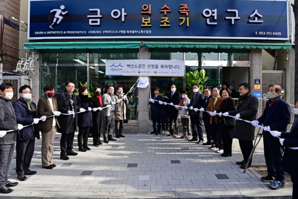 선정만으로도 그 우수성이 인증되는 ‘백년소공인’은 대구 전체 53개소, 동구에는 금아의수족보조기연구소를 포함하여 7개소만이 그 가치를 인증받았으며, 업력, 제품과 서비스, 사회공헌, 경영철학, 가업 승계 등이 주요 평가항목으로 검증받는다.