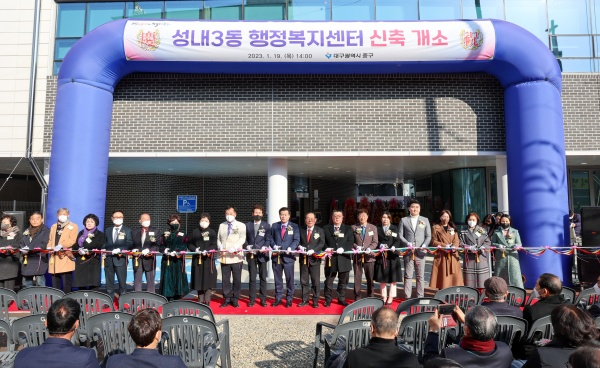 대구 중구청(구청장 류규하)은 지난 19일 오후2시 성내3동 행정복지센터신축사업 완료를 축하하기 위해 개소식을 열었다.