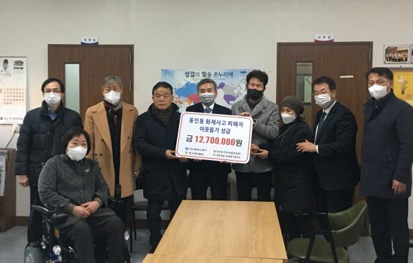 대구시 중구청(구청장 류규하)은 지난 20일 동인동 주택화재로 피해를 본 세대에게 성금 1,270만원을 전달했다고 밝혔다.