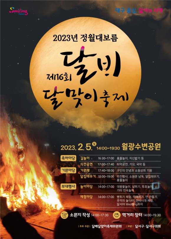 특히, 달집 태우기 시 발생할 수 있는 안전사고 등을 미연에 방지하기 위해 달서경찰서, 달서소방서의 유기적인 협조 지원과 자체 근무인원 100여명을 투입해 안전을 최우선으로 행사를 진행 할 예정이다.
