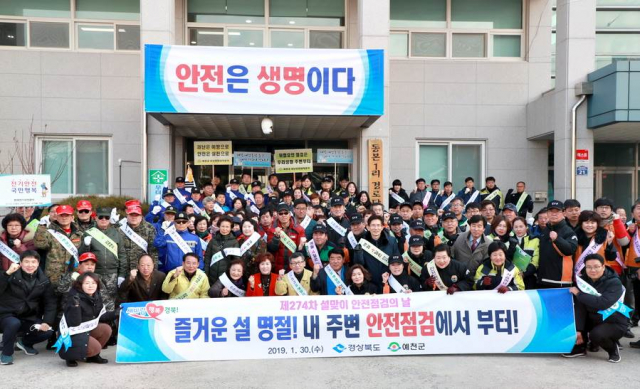 예천군은 30일 오전 10시 30분 예천읍 상설시장 일원에서 민족 최대명절인 설을 앞두고 우리 주변에서 일어날 수 있는 위험요인을 해소하고 대처할 수 있도록 안전점검의 날 캠페인을 실시했다.