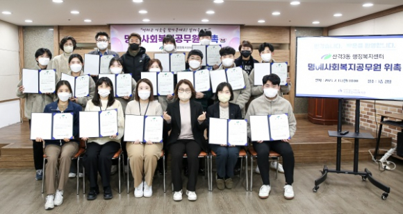 대구 북구 산격3동 행정복지센터(동장 박은희)는 2월 13일(월) 사회복지기관인 가정종합사회복지관 소속 사회복지사 19명을 명예사회복지공무원으로 위촉하고 관내 복지사각지대 및 위기가구 발굴에 함께 협력하기로 하였다.