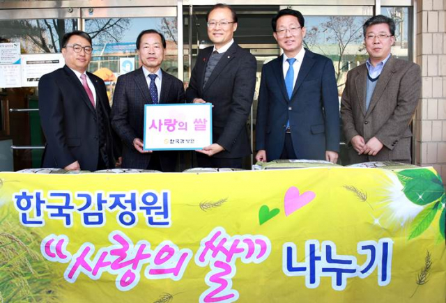 한국감정원 사랑의 쌀 나눔 전달식이 지난 30일 보림노인무료급식소(평리동)에서 있었다. 이 날 전달식에는 김상훈 국회의원, 류한국 서구청장, 김양수 한국감정원 동남권 본부장, 김종한 한국감정원 대구지사장이 참석하였으며, 전달된 백미(10kg) 150포는 보림노인무료급식소 등 관내 무료급식소 3곳에 배분되었다.