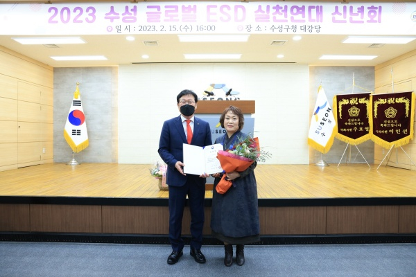 대구 수성구(구청장 김대권)는 수성 글로벌 ESD 실천 연대(대표 이영지)가 ‘2022 지역 탄소중립 활성화 우수단체’ 공모에서 ‘행정안전부 장관상’을 수상했다고 19일 밝혔다.