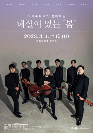 서구 비원뮤직홀(관장 황영희)은 오는 3월 4일(토) 17시, BMH 로맨틱 시리즈로 지역 청년 예술가 앙상블 단체의 공연인 ‘노이슈타트와 함께하는 해설이 있는 봄’을 개최한다.