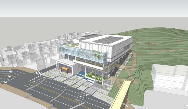 당선작은 경사지를 활용하고 지하공간 사용을 최소화하는 설계로 절토량을 줄여 토목공사비를 절감하였으며 옥상을 녹화하고 태양광발전 시스템을 도입하여 친환경성을 고려했다.