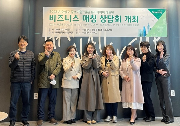 대구 수성구(구청장 김대권)는 지난 20 ~ 21일 동안 수성대학교 강산관에서 뷰티·건강식품 전문 일본 바이어단, 수성구 중소기업 9개 사가 참석한 가운데 예약제 형식의 비즈니스 매칭 상담회를 개최했다.