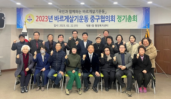 바르게살기운동 대구중구협의회(회장 주점덕)는 지난 22일 대봉1동 행정복지센터 4층 대회의실에서 2023년 바르게살기운동 대구중구협의회 정기총회를 개최했다.