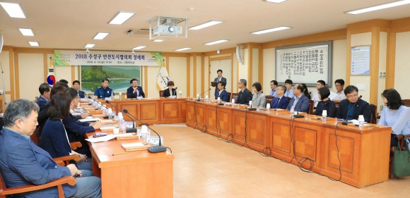 수성구 안전도시 협의회 회의에서 관계기관들이 회의를 진행하고 있다.