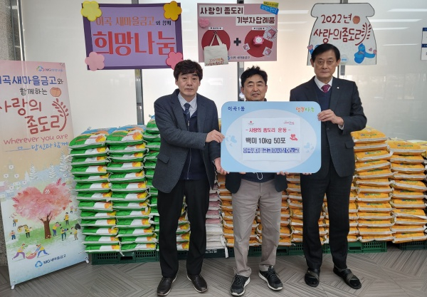 대구 달서구 이곡1동(동장 천지영)은 2일 이곡새마을금고(이사장 허노교)에서 사랑의 좀도리운동으로 모은 백미 10kg 50포를 이곡1동 저소득가정에 후원했다고 밝혔다.