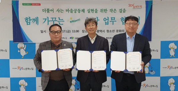 대구광역시 남구 대명2동 행정복지센터(동장 최종철)는 지난 17일, 대구광역시 청소년 문화의 집과 2023년 「주민자치 아름다운 마을 가꾸기 사업」의 일환으로 청소년 문화의 집 소유의 텃밭을 올해 연말까지 주민자치위원회를 필두로 한 조직단체 회원과 주민들이 공동경작 텃밭으로 대여 사용하는 ‘함께 가꾸는 작은(쁘띠)농장 운영’ 업무 협약을 맺었다고 20일 밝혔다.