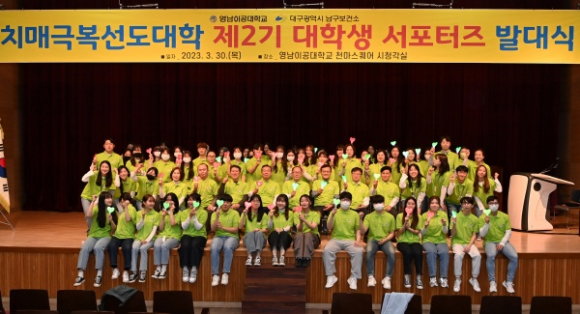 대구광역시 남구청(구청장 조재구)은 지난 30일, 영남이공대학교 천마스퀘어에서 간호학과, 물리치료과, 치위생과, 박승철헤어과 학생 59명으로 이루어진 치매극복선도대학 제2기 대학생 서포터즈 발대식을 성황리에 개최했다고 31일 밝혔다.