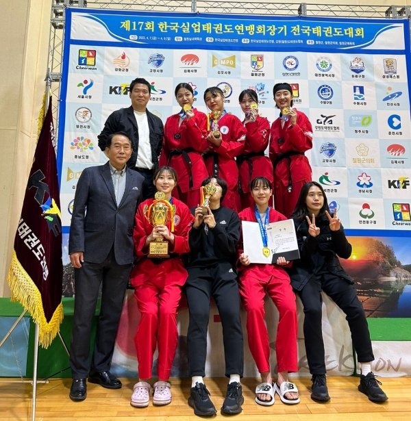 대구 수성구(구청장 김대권) 여자태권도선수단은 지난 7일부터 9일까지 강원도 철원 체육관에서 개최된 제17회 한국 실업 태권도 연맹 회장기 전국태권도대회 여자일반부 5인조 단체전에서 금메달을 획득하며 대회 4연패라는 금자탑을 달성했다.