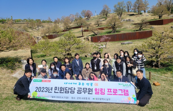 대구광역시 남구청(구청장 조재구)은 지난 7일, 본청과 동 민원 담당공무원 30여 명을 대상으로 감정노동 스트레스 치유를 위한 힐링 프로그램을 운영했다고 11일 밝혔다.