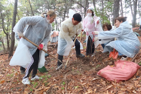 지난 4월 1일 진행된 우리마을 동산가꾸기는 지난해 봄 산불이 난 학산에 생태회복을 위해 자원봉사자, 단체회원 200명이 참여해 편백나무 600그루를 식재했다. 4월 15일까지 각급단체‧지역주민‧자원봉사자 등 1,000여 명이 18회에 걸쳐 편백나무 2,500그루 등 10종 총 5,400그루를 식재한다.