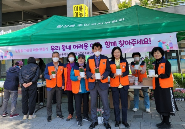 이날 활동에는 칠성동 직원 및 지역사회보장협의체 위원, 통장 등 15명이 참여했으며, 주민들에게 복지사각지대 발굴 안내문과 직접 심은 꽃화분을 나눠 주며 주변의 어려운 이웃을 발견하면 적극적으로 알려 줄 것을 당부했다.