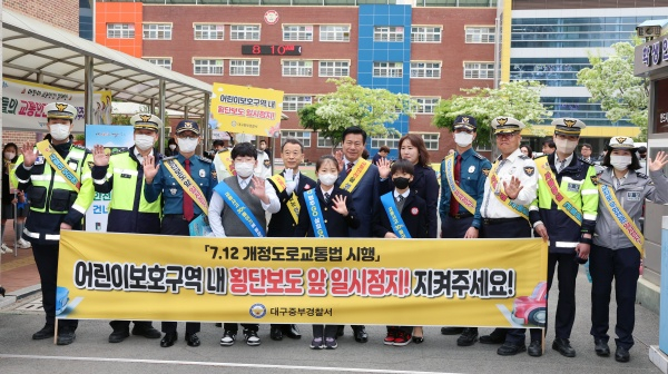 대구 중구청(구청장 류규하)은 18일 경북대사범대학부설초등학교에서 어린이 교통사고 예방을 위한 ‘어린이 교통안전 캠페인’을 실시했다.