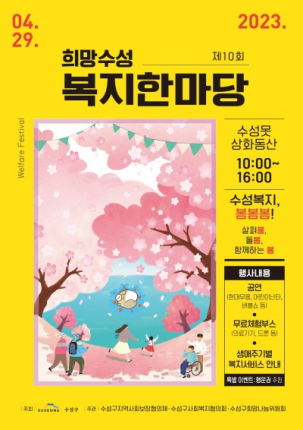특히‘수성복지, 봄봄봄! 살펴봄, 돌봄, 함께하는 봄’이라는 슬로건으로 진행될 이번 행사는 주민들과 함께 즐기는 봄맞이 복지행사로 좀 더 특별하고 역동적일 것으로 예상된다.