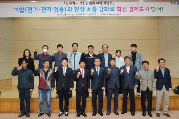 대구 달서구(구청장 이태훈)는 26일, 27일 양일간 대구비즈니스센터(갈산동 소재)에서 『2023년 전기·전자 기업 대상 찾아가는 기업체 현장 간담회』와 「제1회 달서 기업인 굿모닝 스터디」를 진행했다고 밝혔다.