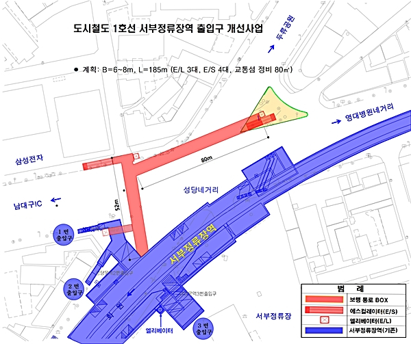 대구시는 도시철도 1호선 서부정류장(관문시장)역을 이용하는 시민들의 접근 편의성을 높이고 지역발전을 위해 서부정류장 북편에 출입구 2개소를 추가 설치한다고 밝혔다.