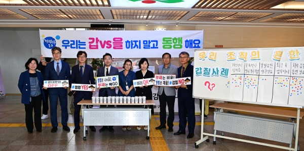 이번 캠페인은 상호존중의 날(매월 11일)을 맞이하여 직장 내 갑질 근절 및 소통과 공감을 통한 청렴한 공직 분위기를 조성하기 위해 실시하였으며, 공직사회 내에서 자주 일어나는 갑질 사례 현장투표도 함께 진행하여 직원들의 호응을 이끌어냈다.