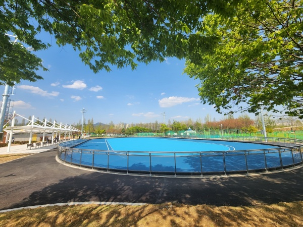 이에 수성구는 문화체육관광부에서 주관하는 2021년도 생활체육시설 확충 공모 사업에 선정돼 총 10억 원(국비 3, 시비 7)의 예산을 지원받아 아크릴 바닥으로 전면 교체하고 안전울타리, 파고라, 조명타워 등의 시설물을 신규로 설치했다.