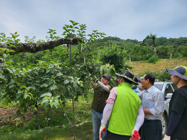 ○ 이날 일손돕기는 대가면과 농협중앙회 성주군지부의 영농철 일손돕기 협약 체결에 따라, 백종국 대가면장을 비롯하여 대가면, 농협중앙회 성주군지부, 성주군청 자치행정과 및 도시계획과 직원, 마을 주민 등 30여 명이 참여하였으며, 아침부터 사과 적과 작업에 구슬땀을 흘리며 뜻깊은 시간을 보냈다.