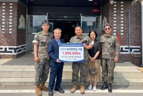 대구 동구 안심2동 방위협의회(회장 정우호)는 호국 보훈의 달을 맞이하여 50사단 501여단 동구대대(대대장 중령 차현우)를 방문해 장병들에게 호국장학금을 전달했다.