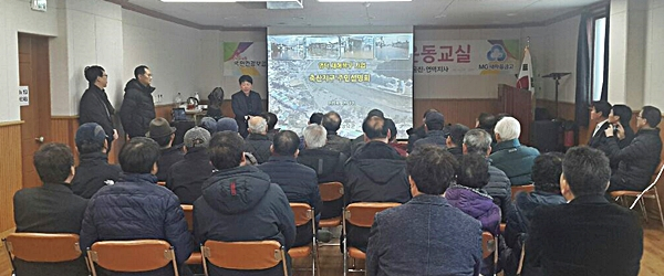 영덕군은 지난 12일 축산면 노인복지회관에서 축산지구 재해복구사업과 관련해 주민설명회를 열었다. 주민과 관계자 50명이 참석해 현장을 답사했으며 주민들은 배수체계 개선과 침수재발 방지를 건의했다.