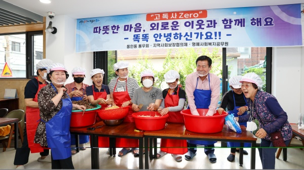 지난 14일 반찬 만들기 행사에는 류규하 중구청장이 동행봉사단과 함께 40명에게 전달할 도라지황태채무침과 고사리볶음 반찬을 직접 만들고 나눠 담았다.
