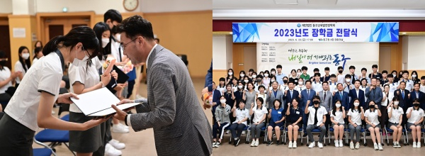 (재)동구교육발전장학회(이사장 윤석준)는 지난 23일 동구청 대회의실에서 ‘제14회 동구교육발전장학회 장학금 전달식’을 개최했다.