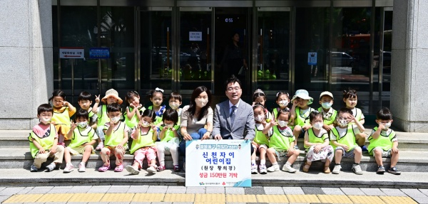 동구 신암2동에 위치한 국공립 신천자이 어린이집(원장 황희경)은 지난 27일 대구 동구청을 방문해 어려운 이웃을 돕는데 사용해달라며 나눔바자회 수익금 전액 150만원을 기부했다.