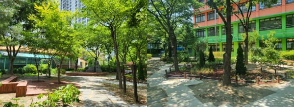 구청에 따르면 앞서 공모를 통해 신청을 받은 계성초등학교와 ‘2023년 명상숲 조성사업을 위한 협약’을 체결하고 식재 및 시설물 설치 등의 방향에 대한 협의를 거쳐 실시설계 용역을 완료했으며 지난 4월 공사를 시작해 6월 초 준공했다.