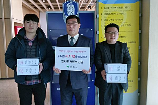 영주시는 대한민국 축구종합센터 유치를 위해 지난달 10일 장욱현 영주시장이 대한축구협회를 직접 방문해 유치 신청서를 제출한 이후 문화의 거리, 가흥신도시, 설맞이 귀성객을 대상으로 영주종합터미널 등에서 범시민 서명운동을 전개해왔다.
