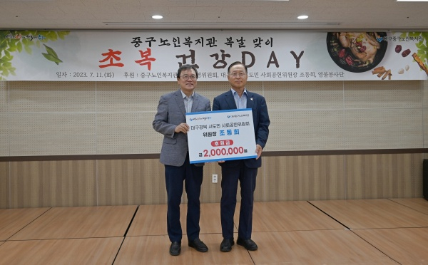 이번 초복 맞이 ‘초복건강데이’를 위해 중구노인복지관 자치운영위원회에서 후원금 200만원, 염불봉사단이 후원금 100만원과 함께 자원봉사활동을 해주었다.