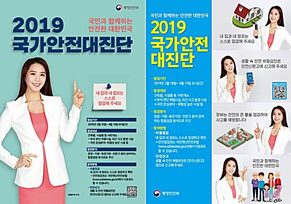 2019년 국가안전대진단은 위험시설에 대한 전수조사 및 데이터 구축, 합동점검을 통한 위험시설 집중점검, 이행실태 확인점검 실시, 점검 실명제 확대, 대진단 추진 전 과정 군민참여 등 위험시설 안전관리 체계 확립 및 점검의 실효성 강화와 전방위적인 군민 참여를 통해 안전문화 정착에 역점을 두고 실시할 예정이다.