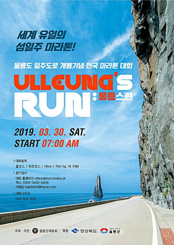 울릉군은 오는 3월 30일 울릉도 일주도로 개통기념 전국 마라톤대회를 개최 한다고 밝혔다.