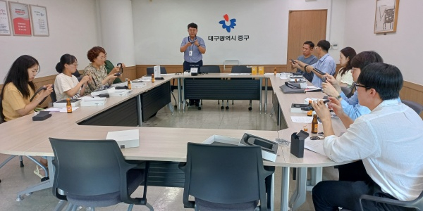 대구 중구(구청장 류규하)는 지난 19일 본청 민원실 및 동 행정복지센터의 민원 처리 공무원을 대상으로 민원 응대 과정에서 발생할 수 있는 폭언․폭행 등 위법행위로부터 민원 공무원을 보호하기 위해 휴대용 영상․음성 기록 장비인 ‘웨어러블 캠’ 14대를 배부하고 사용 방법, 사용 지침 및 개인정보 보호 등에 관한 교육을 실시했다고 밝혔다.