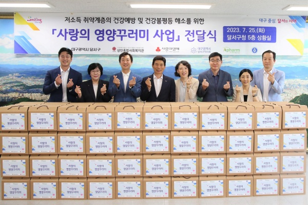 대구 달서구(구청장 이태훈)는 25일 달서구청 5층 상황실에서 「사랑의 영양꾸러미」전달식을 추진했다고 밝혔다.