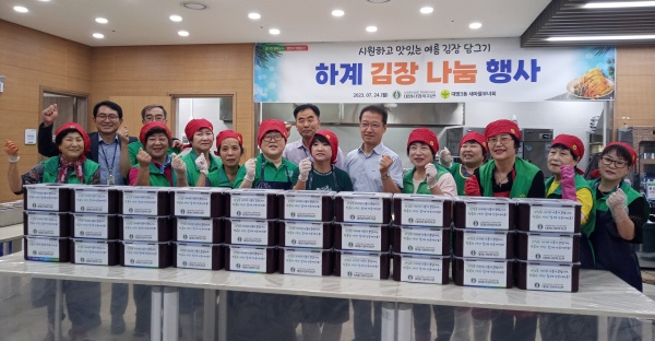 대구광역시 남구 대명3동 행정복지센터(동장 이종태)는 지난 24일,대명3동 새마을부녀회(회장 강숙념)에서 관내 어려운 이웃들을 위하여 시원한 여름 김장(물김치) 100여 통을 담가 어려운 이웃에게 전달했다고 27일 밝혔다.