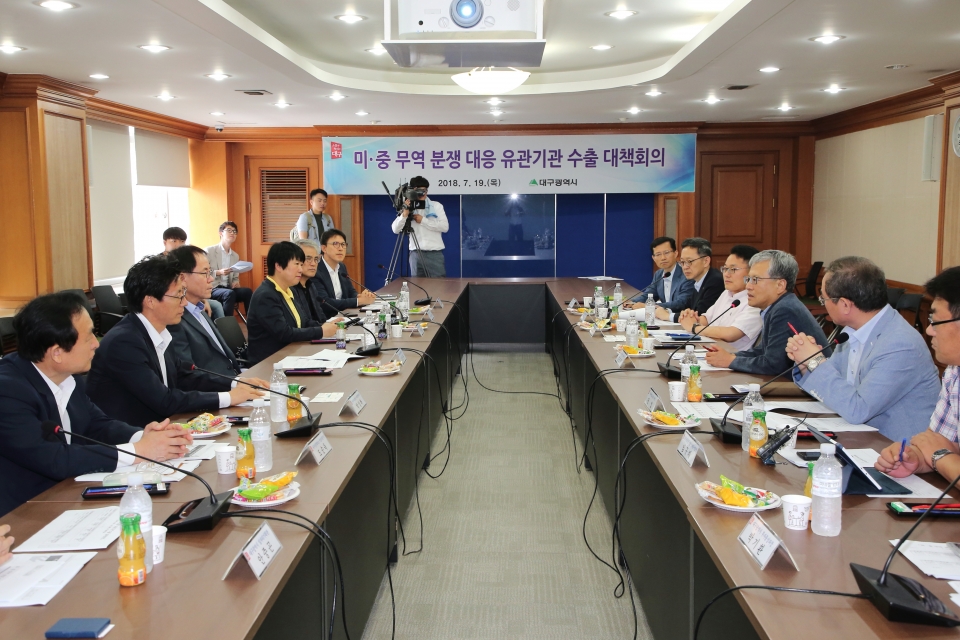대구시는 7. 19.(목) 김연창 경제부시장 주재로 미·중 무역 분쟁 관련 유관기관 ‘수출 점검 대책 회의’를 개최해 미국의 무역제재와 중국의 보복조치 등의 지역 수출에 대한 영향을 점검하고 대응 방안을 논의했다.