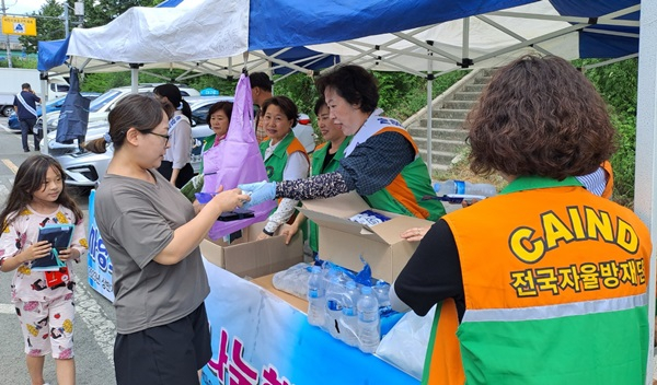 검단동 지역자율방재단(단장 이명규)은 지난 11일 태풍이 지나가고 무더위가 다시 시작됨에 따라 건강한 여름나기를 위하여 물나눔 행사를 실시하였다.