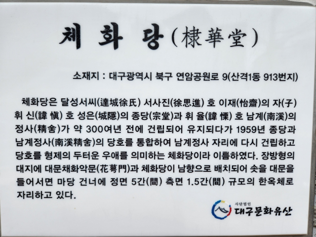 지난 8월 17일 달성서씨 문중(서영봉 달성서씨대종회장, 서일수 성균관 33대 고문) 에서 체화당에 대구 유림 4단체장 (향교 도인석 전교, 담수회 서정학 회장, 박약회 조동희 지회장, 성균관 유도회 이수목 회장)을 초청 하여 서씨문중을 소개한 후 맥참숯불식육식당 에서 저녁만찬을 대접했다.