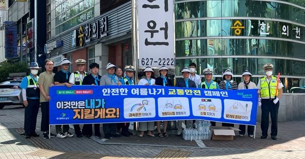 대구광역시 남구청(구청장 조재구)은 지난 7일, 본격적인 폭염 시작으로 교통량이 증가하는 여름 휴가철을 맞아 교통사고 예방을 위한 ‘안전한 여름나기 교통안전 캠페인’ 실시했다고 17일 밝혔다.