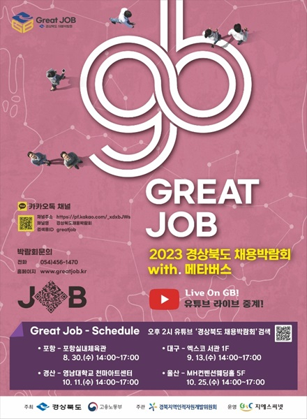 경상북도 채용박람회는 경상북도와 고용노동부가 주최해 지난 8월 30일 포항을 시작으로 오는 9월 13일 대구 엑스코, 10월 11일 경산 영남대학교 천마아트센터, 10월 25일 울산 MH컨벤션웨딩홀에서 각각 열릴 예정이다.