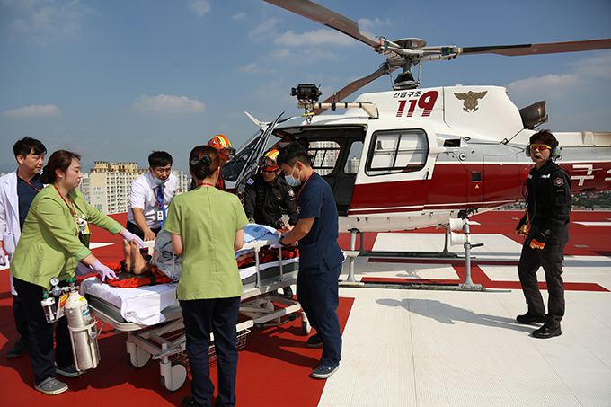 그러나 옥상 헬기장의 정식지정으로 응급환자 발생 시 소방헬기를 활용 곧바로 병원으로 이송할 수 있는 체계가 마련된 것이다. 이번 합동훈련은 이러한 응급환자 항공이송 절차를 숙달하고 소방과 병원간 연계 강화를 위해 실시하게 되었다.