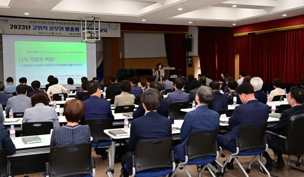 교육은 정은자 양성평등교육진흥원 폭력예방교육 전문강사가 ‘나의 역할과 책임! 그 실천들이 건강하고 안전한 노동환경을 만들어나간다’라는 주제로 ▲성인지 감수성 에피소드 ▲고위직 공무원 책임과 의무 등의 내용으로 진행됐다.